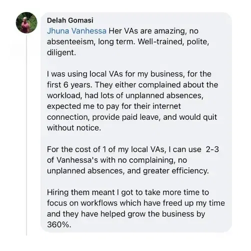 Hiring someone offshore always comes with a risk like poor performance and absences, and as a business, we always need to be ahead to ensure that the business of our clients will always run smoothly.